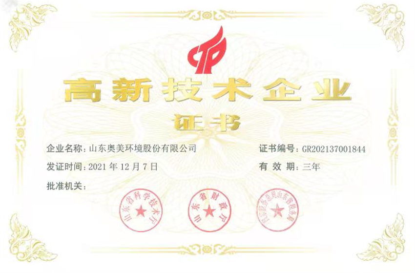多年來公司始終堅持“科學(xué)技術(shù)是第一生產(chǎn)力”、“創(chuàng)新是企業(yè)發(fā)展的不竭動力”的指導(dǎo)思想,積極圍繞企業(yè)經(jīng)濟(jì)效益和科技創(chuàng)新開展技術(shù)研發(fā)工作,確保企業(yè)在激烈的市場競爭中站穩(wěn)腳跟、抓住機(jī)遇。再次獲得“高新技術(shù)”是對我公司的認(rèn)可與激勵,奧美環(huán)境將繼續(xù)秉持創(chuàng)新理念,繼續(xù)加大研發(fā)投入,培養(yǎng)人才隊伍,提升企業(yè)核心競爭力,為企業(yè)的后續(xù)發(fā)展提供源源不斷的人才支撐和技術(shù)支撐!