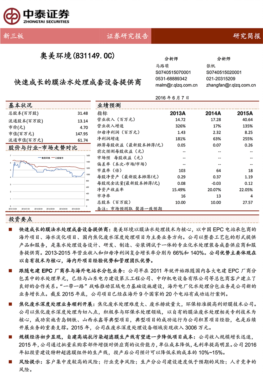 查看原始文檔: 奧美環(huán)境快速成長的膜法水處理成套設備提供商
